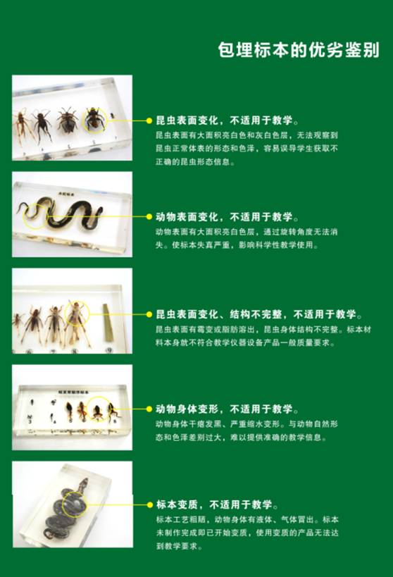 ◆方便直觀:產(chǎn)品采用高透明度的高分子樹脂材料包埋,可360度清晰觀察、學(xué)校,克服傳統(tǒng)標(biāo)本不易攜帶、不方便觀察的缺點。